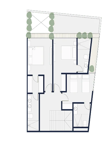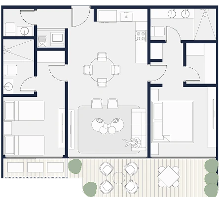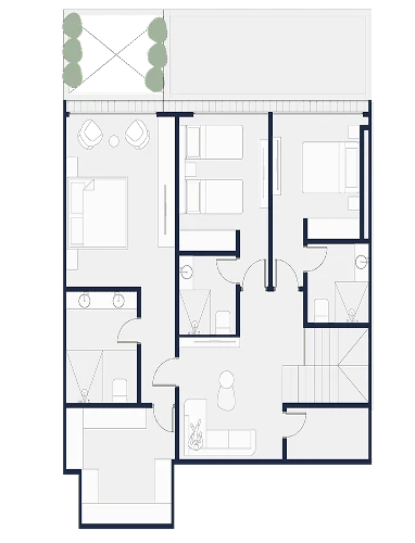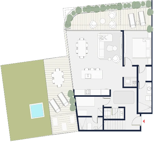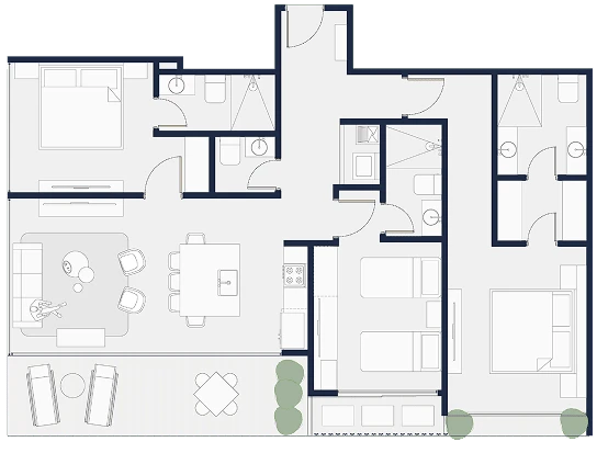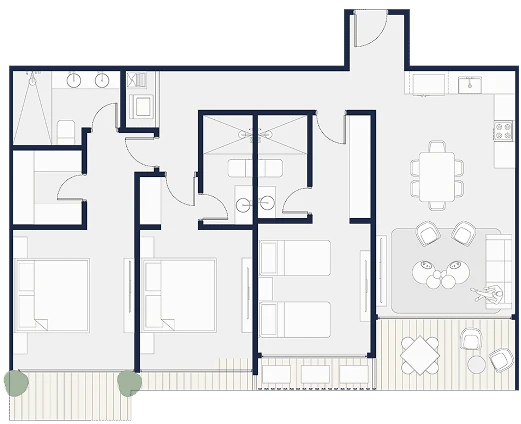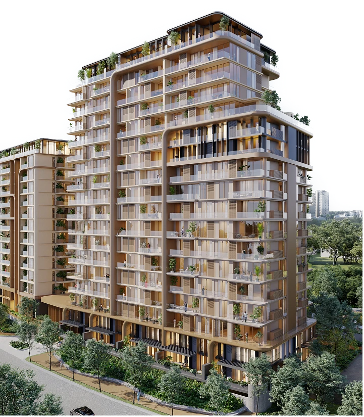 Apartamentos funcionales con amplios balcones y vistas al parque central, ideales para vivir en armonía con la naturaleza. Tamaños desde 100 m2 hasta 235 m2