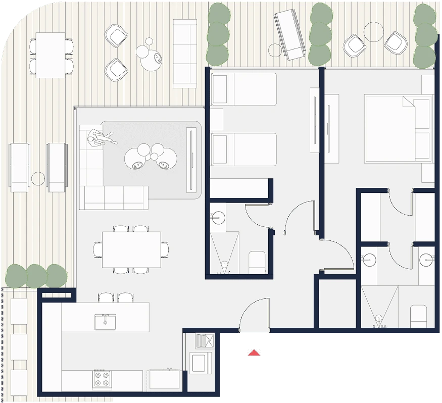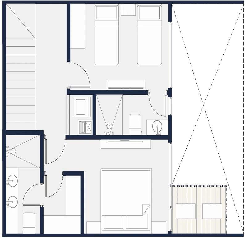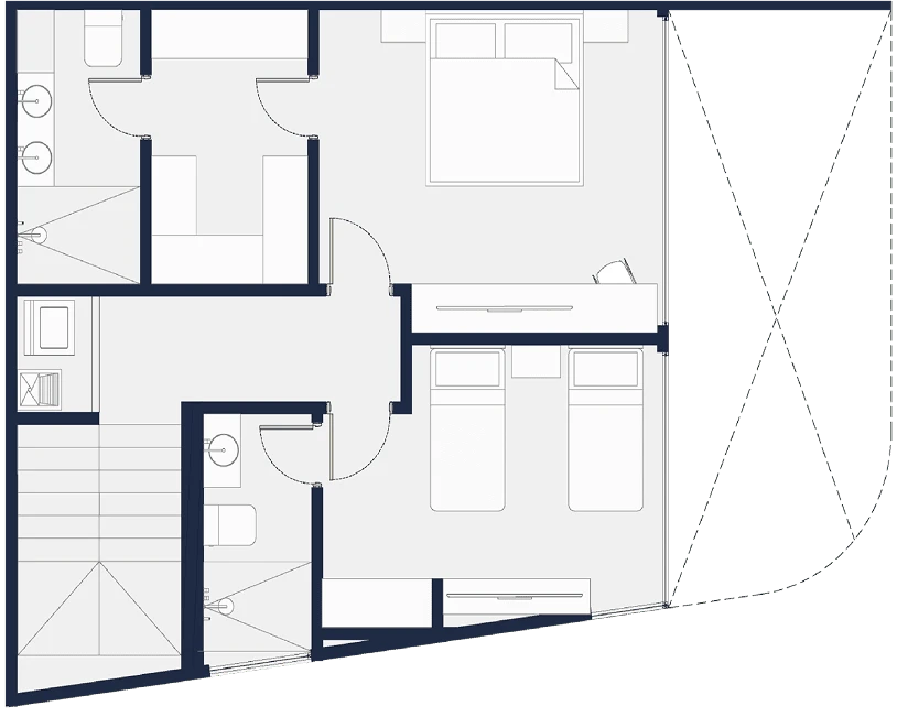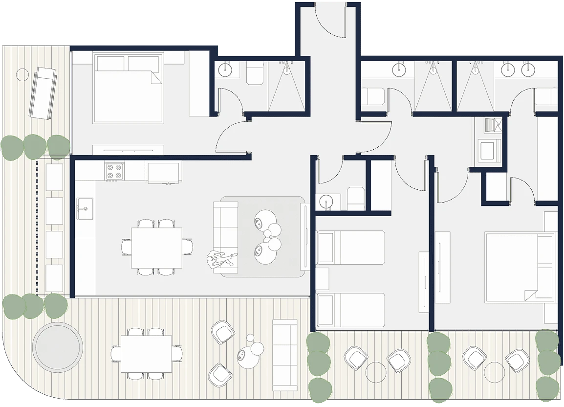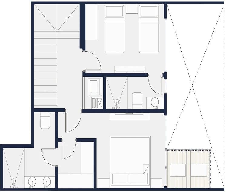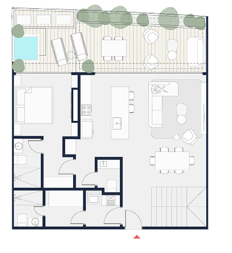 Penthouses exclusivos con amplias terrazas, vistas incomparables y detalles premium en cada rincón. Tamaños desde 150 m2 hasta 246 m2