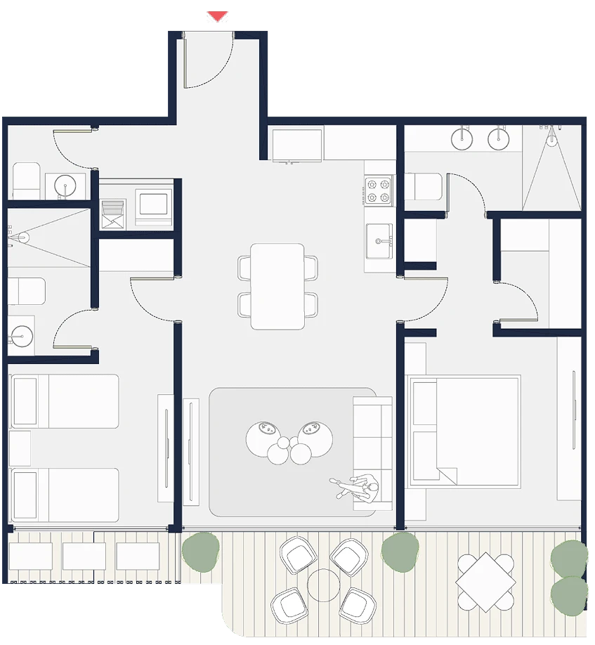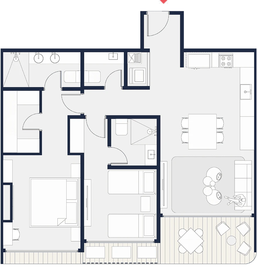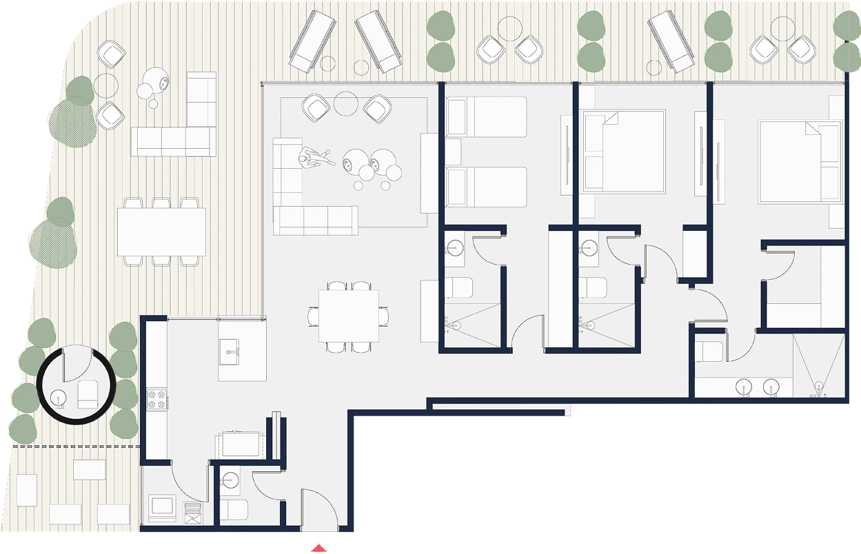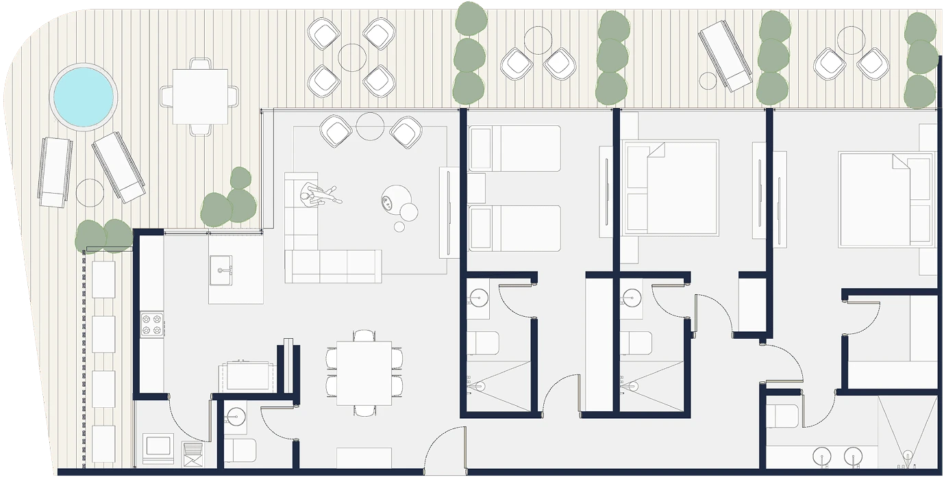 Penthouses exclusivos con amplias terrazas, vistas incomparables y detalles premium en cada rincón. Tamaños desde 150 m2 hasta 246 m2